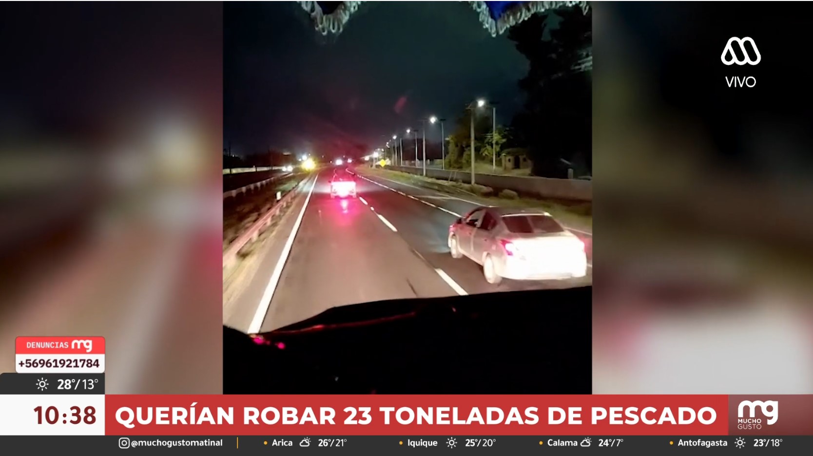 Un impactante registro muestra el momento en que delincuentes interceptaron en la Ruta 5 Sur a un camión que transportaba 23 toneladas de pescados, proveniente de la comuna de Lebu, región del Biobío.
