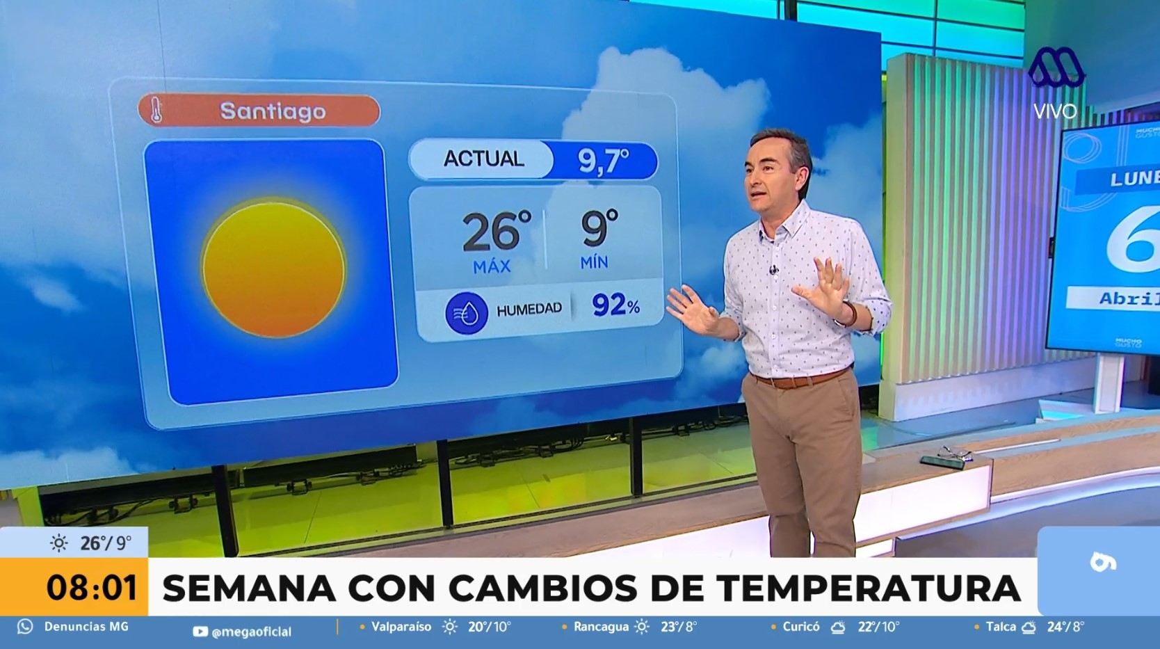 El periodista especializado en meteorología, Alejandro Sepúlveda, entregó el pronóstico del tiempo para esta semana, donde muchos regresan a sus rutinas tras el fin de semana largo de Semana Santa.