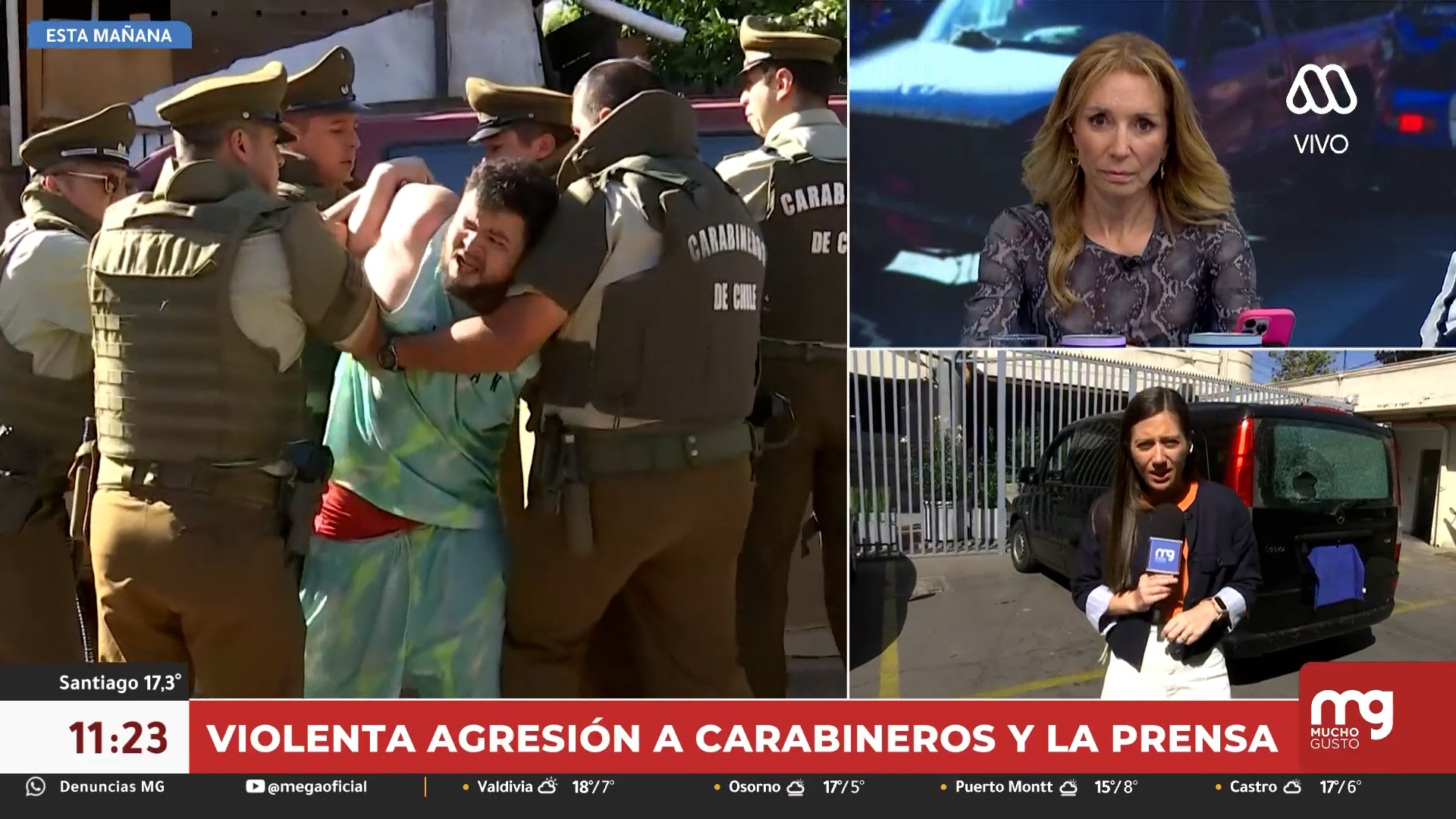 Según contó en pantalla, junto a otros medios de comunicación cubrían los resultados del retiro de vehículos abandonados en calle Venezuela, en la población Lo Hermida.