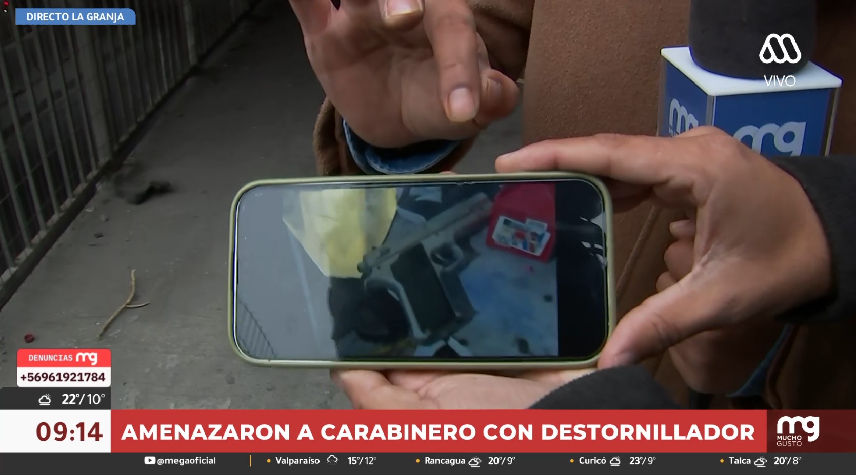 Todo ocurrió a las 10:12 horas, cuando el periodista Danilo Villegas reporteaba sobre el hecho policial que se registró en horas de la mañana en la comuna de La Granja, donde un carabinero de civil dio muerte a un delincuente que intentó asaltarlo en un bus del sistema Red.