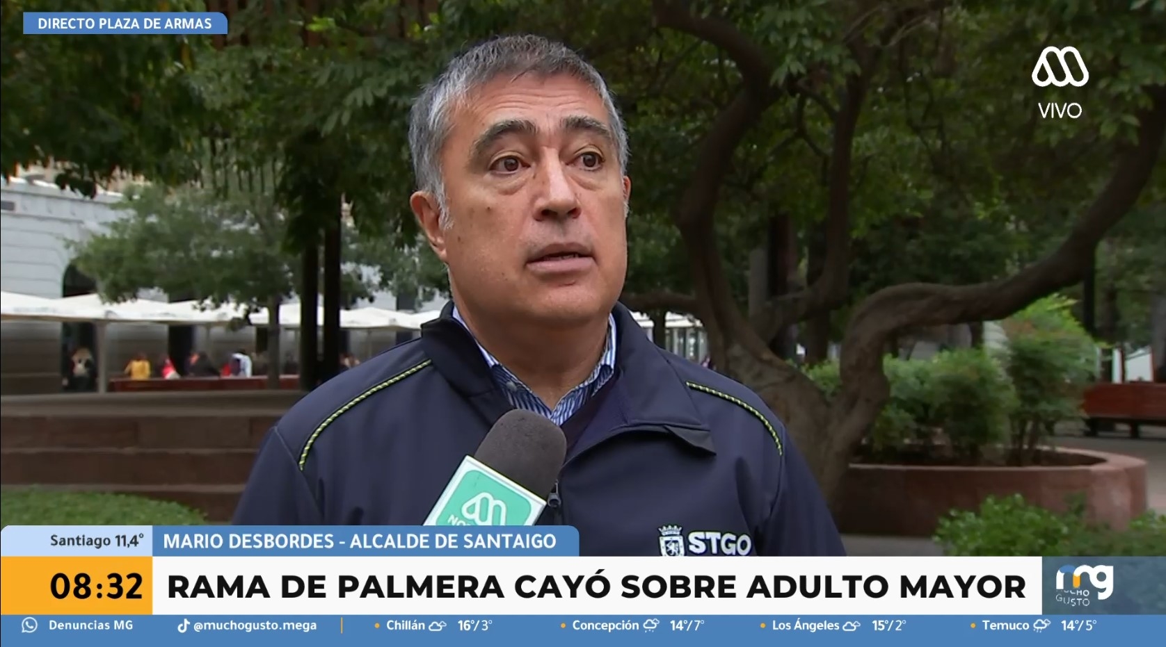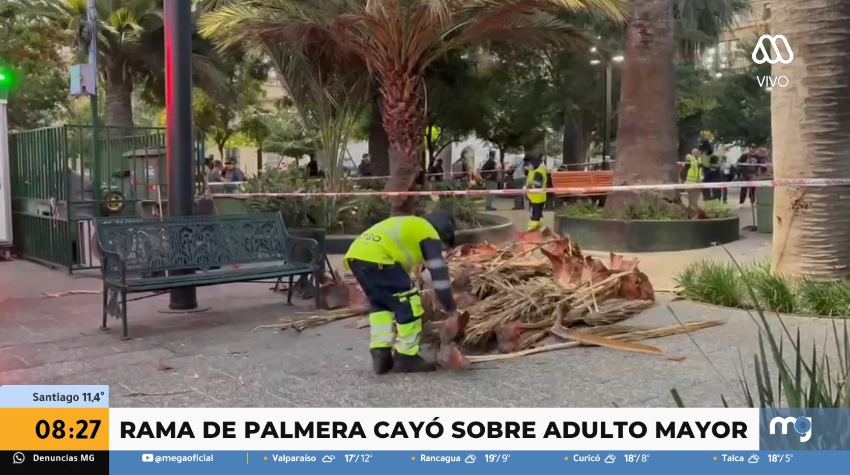 Un adulto mayor resultó lesionado la tarde del lunes, luego que las ramas de una palmera cayeran sobre él en la Plaza de Armas de Santiago.