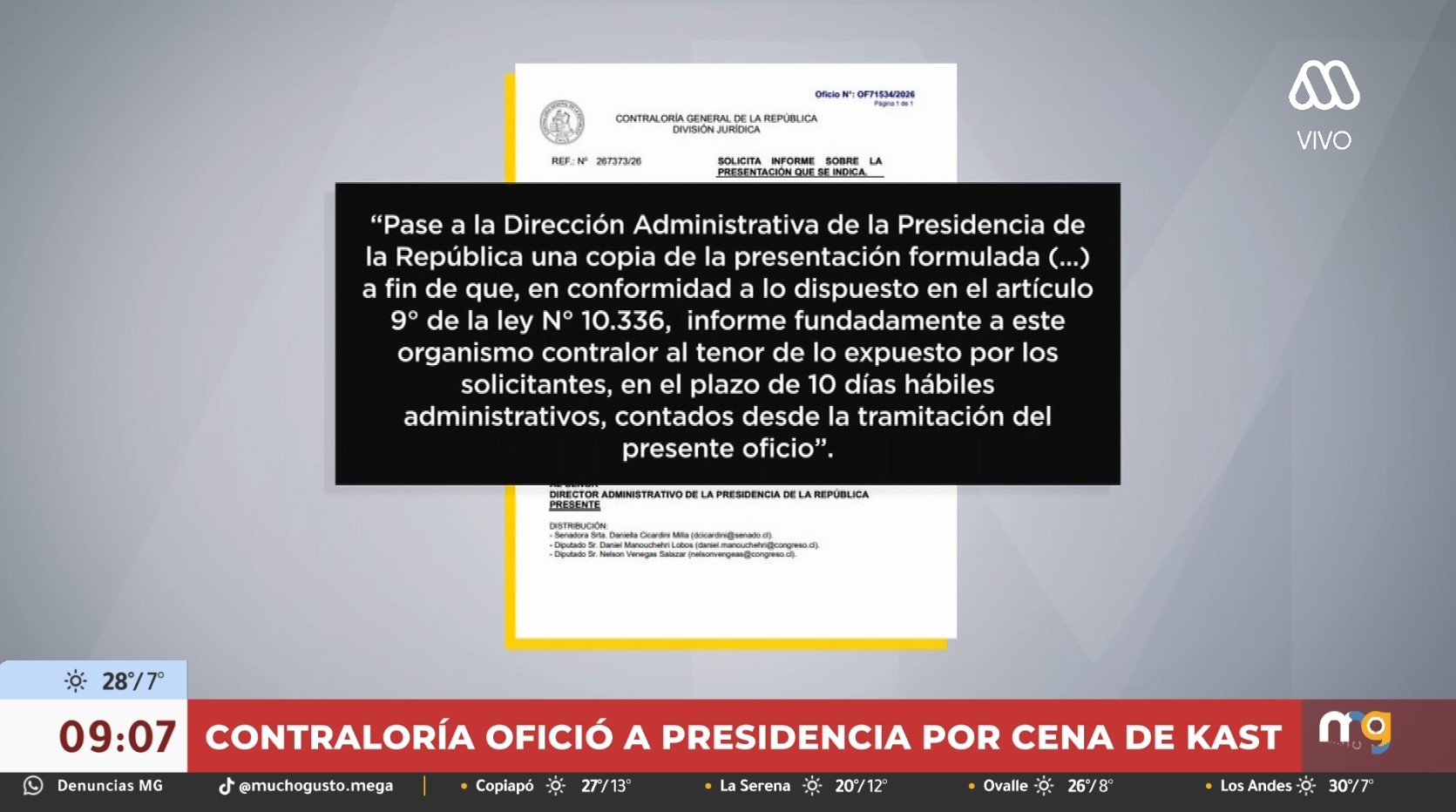Con el oficio despachado, la Dirección Administrativa deberá responder en un plazo de diez días hábiles si la actividad social fue realizada con recursos estatales y si existe justificación suficiente para comprometer dinero de todos los chilenos en una cita de estas características.