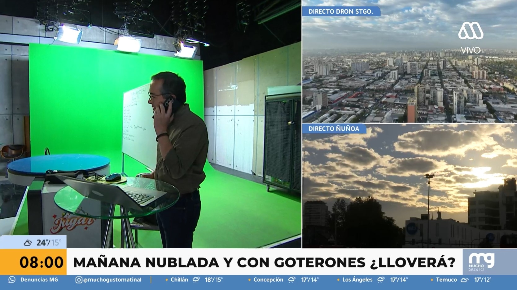En ese momento, se captó al periodista especializado en meteorología, Alejandro Sepúlveda, realizando una misteriosa llamada. "Fue eso no más, no va a llover más, Iván”, se alcanzó a escuchar antes de que colgara.