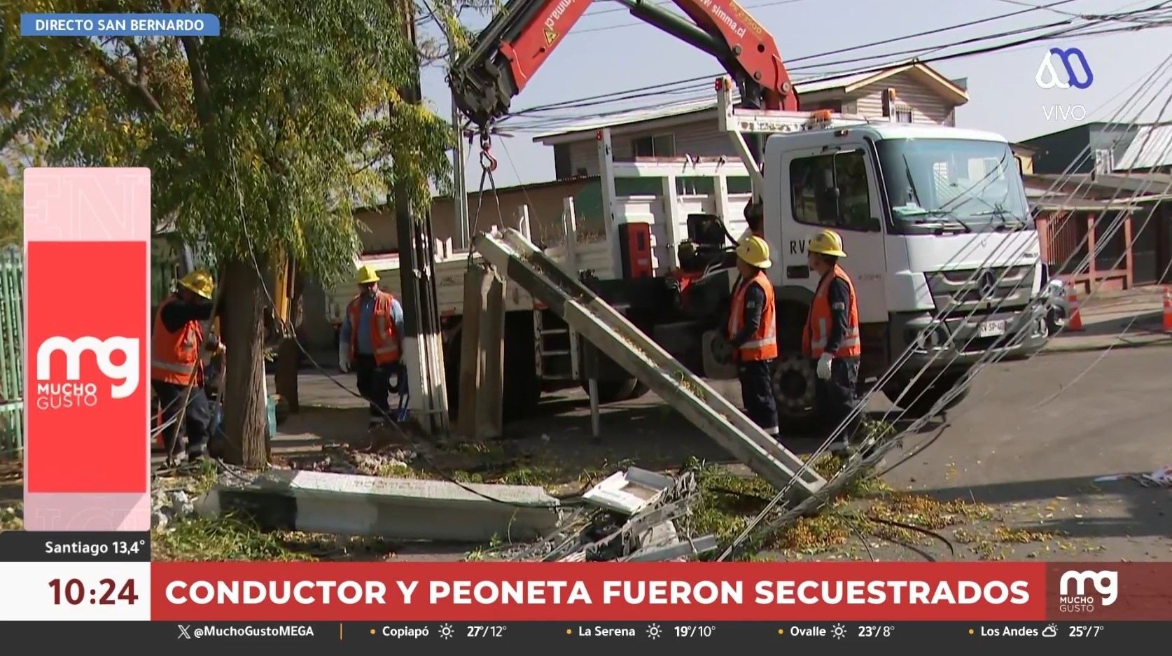 Luego que el conductor fuera secuestrado, los asaltantes tomaron el control del camión y colisionaron con tres postes de alumbrado en la intersección de las calles Domeyko con Nacimiento, a eso de las 5:30 de la mañana.