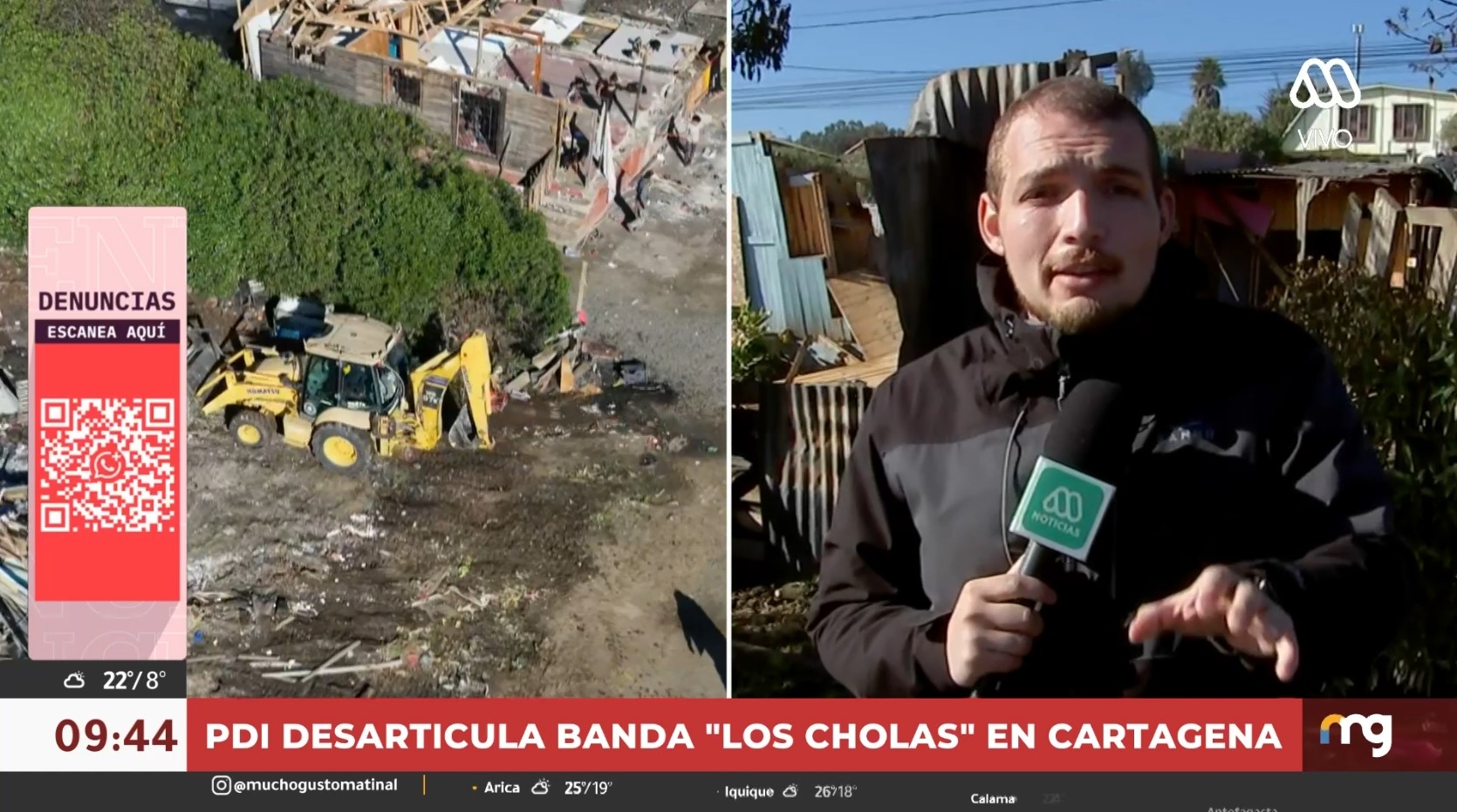 La mañana de este miércoles se desarrolló el desalojo y demolición de viviendas de una toma vinculada a una banda criminal que operaba en la comuna de Cartagena, región de Valparaíso.