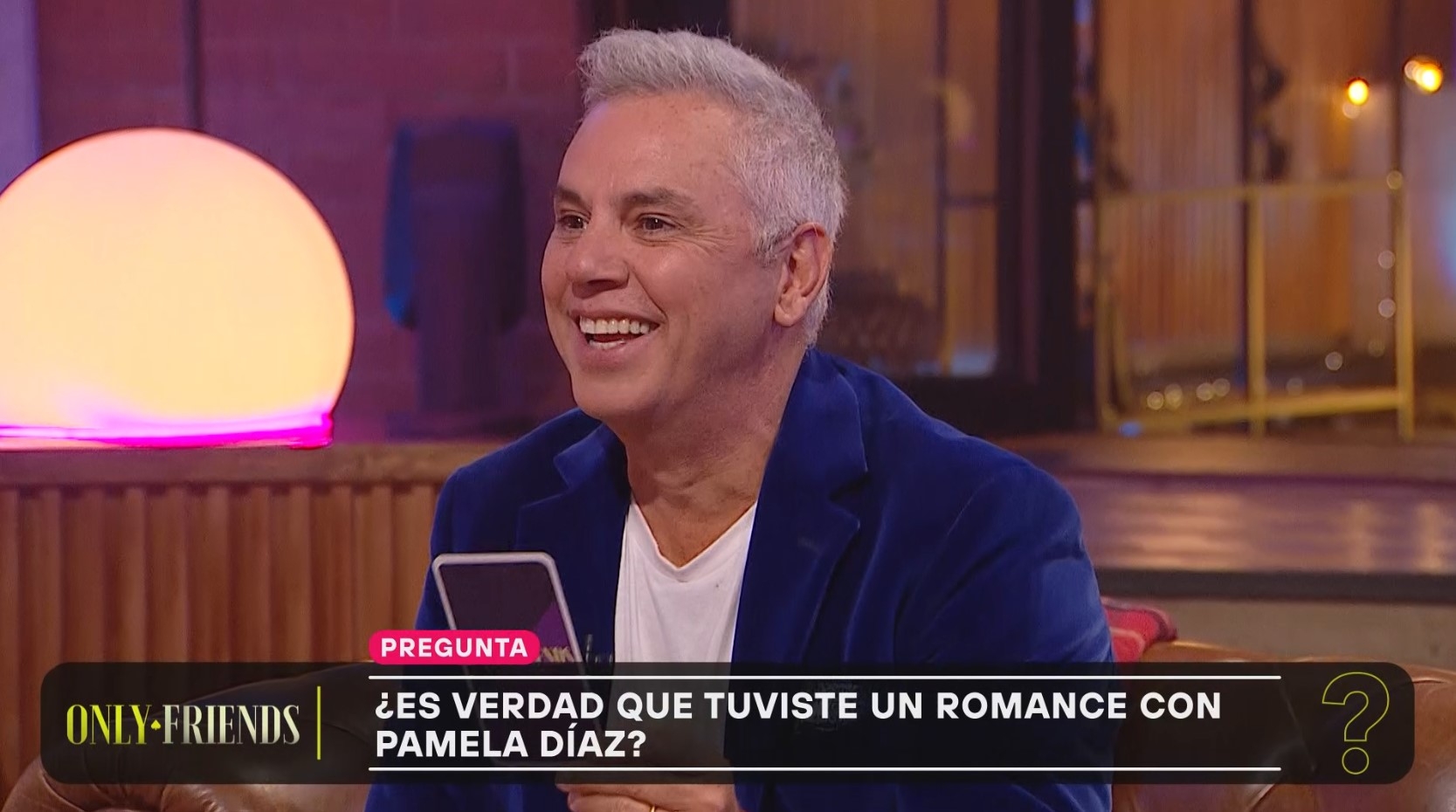 "¿Es verdad que tuviste un romance con Pamela Díaz?", leyó en voz alta el animador de televisión, haciendo que el resto de invitados, como Raquel Argandoña, lo incitaran a contestar con la verdad este rumor que se ha mantenido por años.