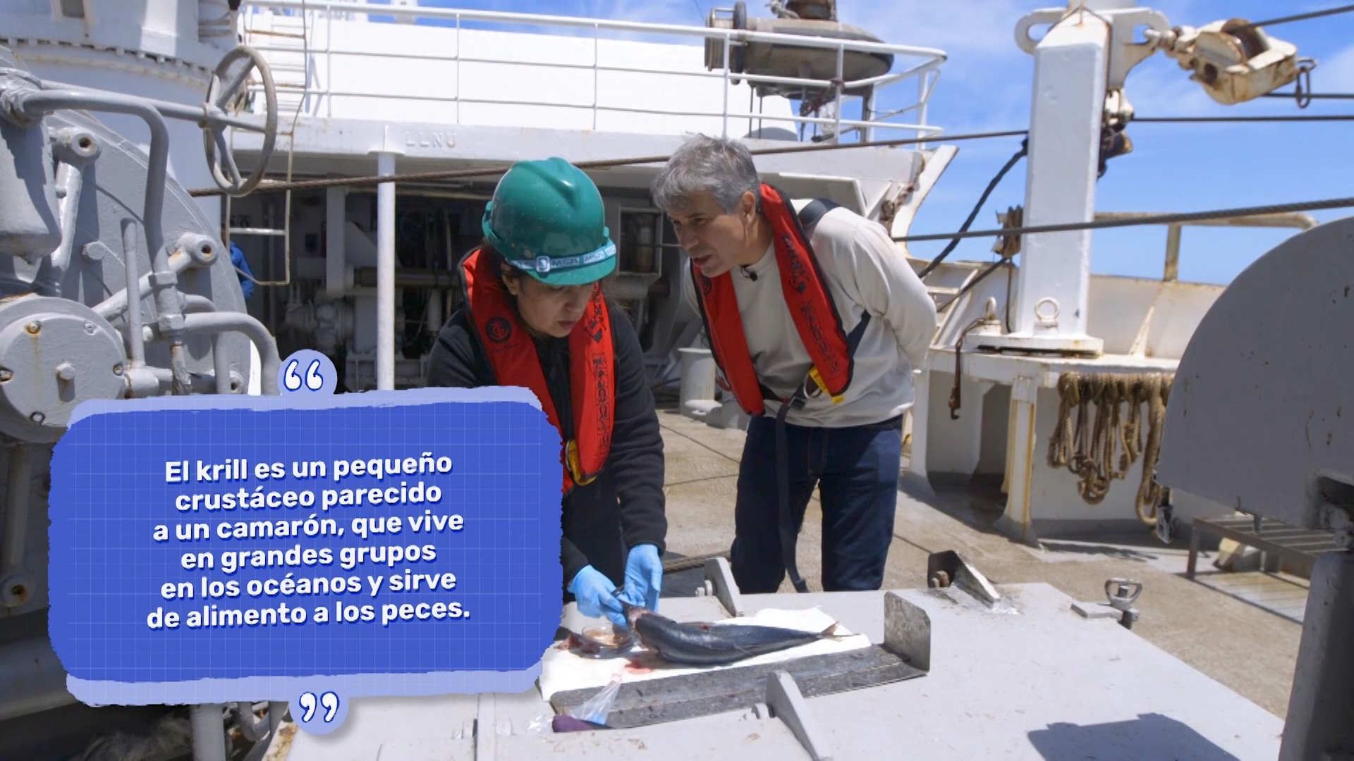 A bordo también viaja Joselyn, una científica que recolecta muestras de plancton y jurel para estudios oceanográficos y genéticos.