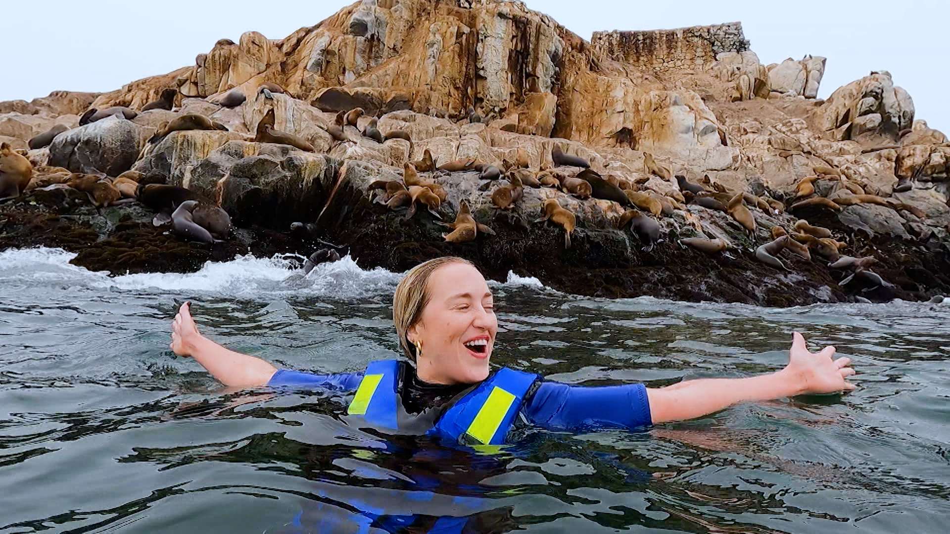 Además, Majo vivió una experiencia única: nadar con lobos marinos en las Islas Palomino y volar en parapente sobre la costa limeña.