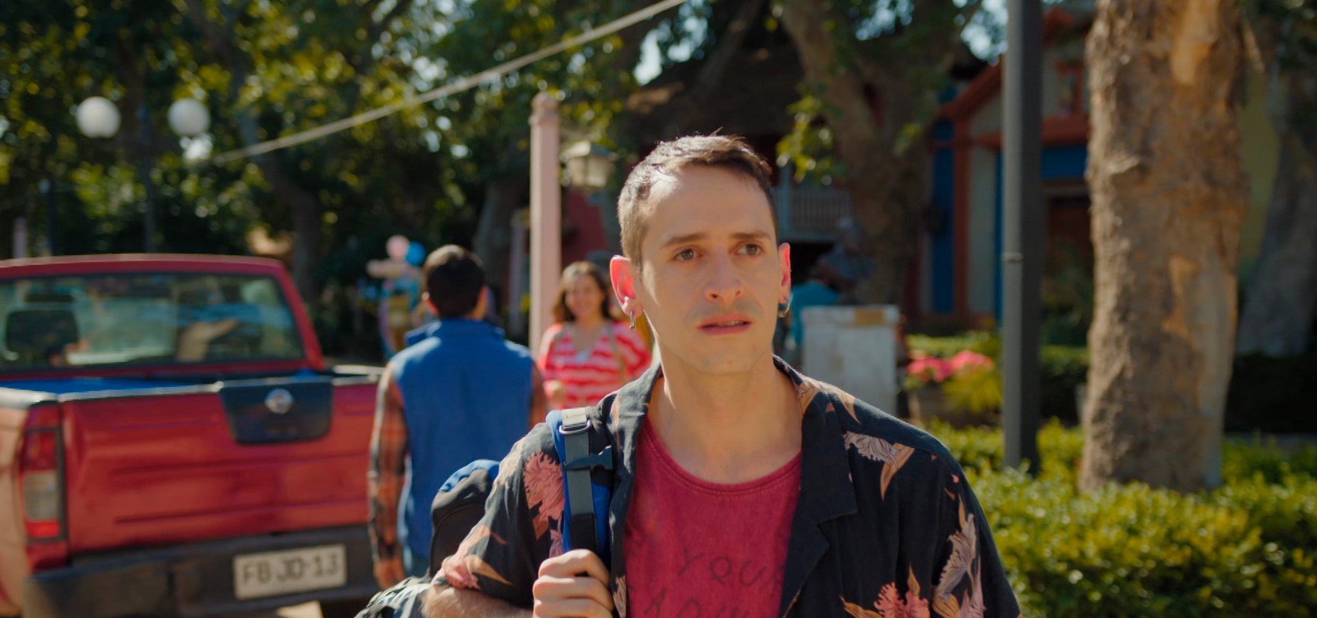 Una vez en la plaza, y ya habiéndose despedido, la aparición de Ayelén (Vivianne Dietz) y su voz harán que el sujeto voltee, cruzando mirada con la joven, quien quedará impactada.