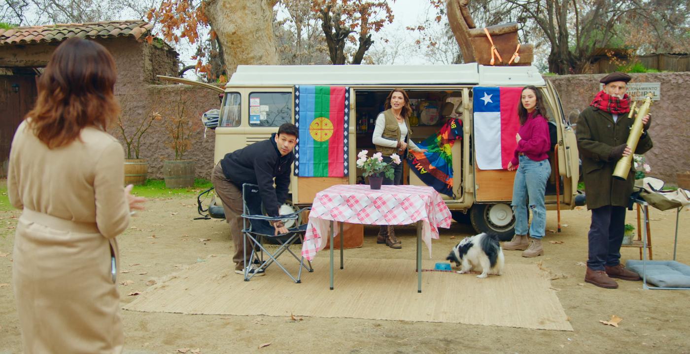 Una vez en el pueblo, la familia no duda en instalar su combi cerca de la plaza central, lugar que de inmediato transforman en su nuevo hogar.