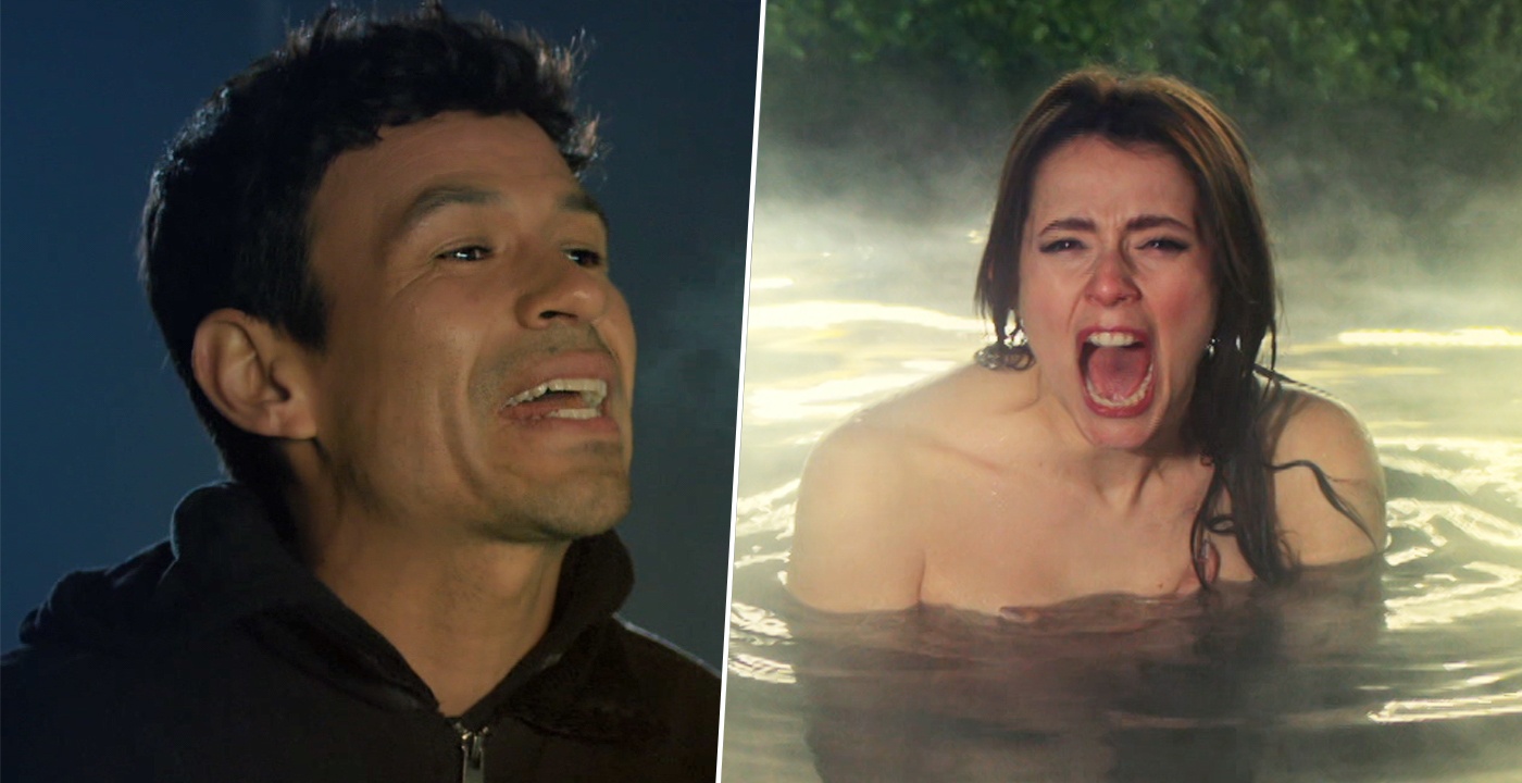 En el primer capítulo de Aguas de Oro, el alcalde Ruiz-Tagle (Álvaro Rudolphy), acompañado por la policía, se acerca a Karla (Carolina Arregui) con el objetivo de desalojar la combi.