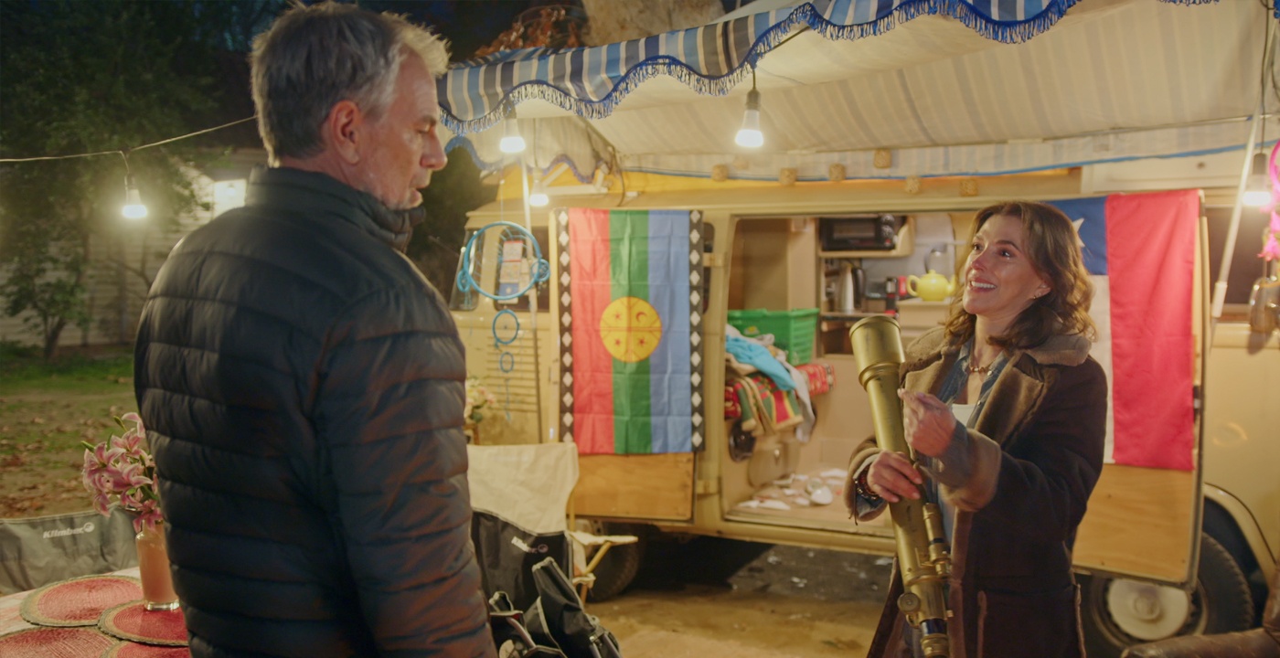 En el tercer capítulo de Aguas de Oro, Karla (Carolina Arregui) le advierte a Carlos (Álvaro Rudolphy) que deberá hacerse responsable de todos los objetos rotos durante el desalojo de su combi.