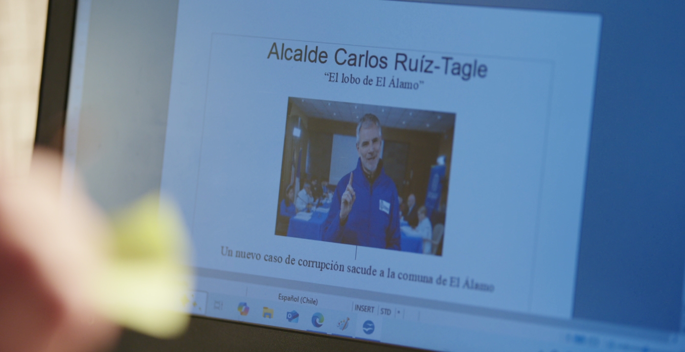 Sin embargo, en el computador del inquilino encuentra un documento sobre Carlos (Álvaro Rudolphy) que detalla sus presuntos actos de corrupción.