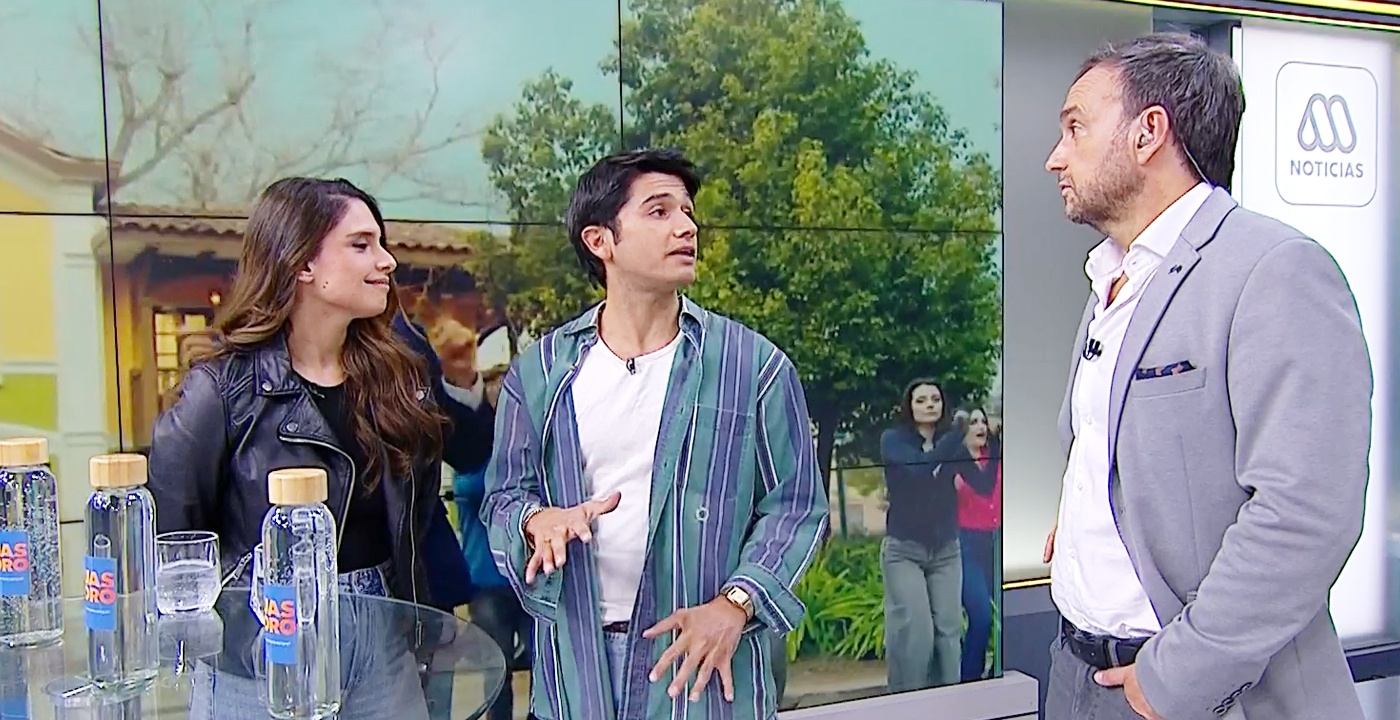 Constanza Araya y Andrew Bargsted visitaron el estudio de Meganoticias Alerta para hablar con Rodrigo Sepúlveda sobre sus roles en Aguas de Oro, la próxima teleserie vespertina de Mega.