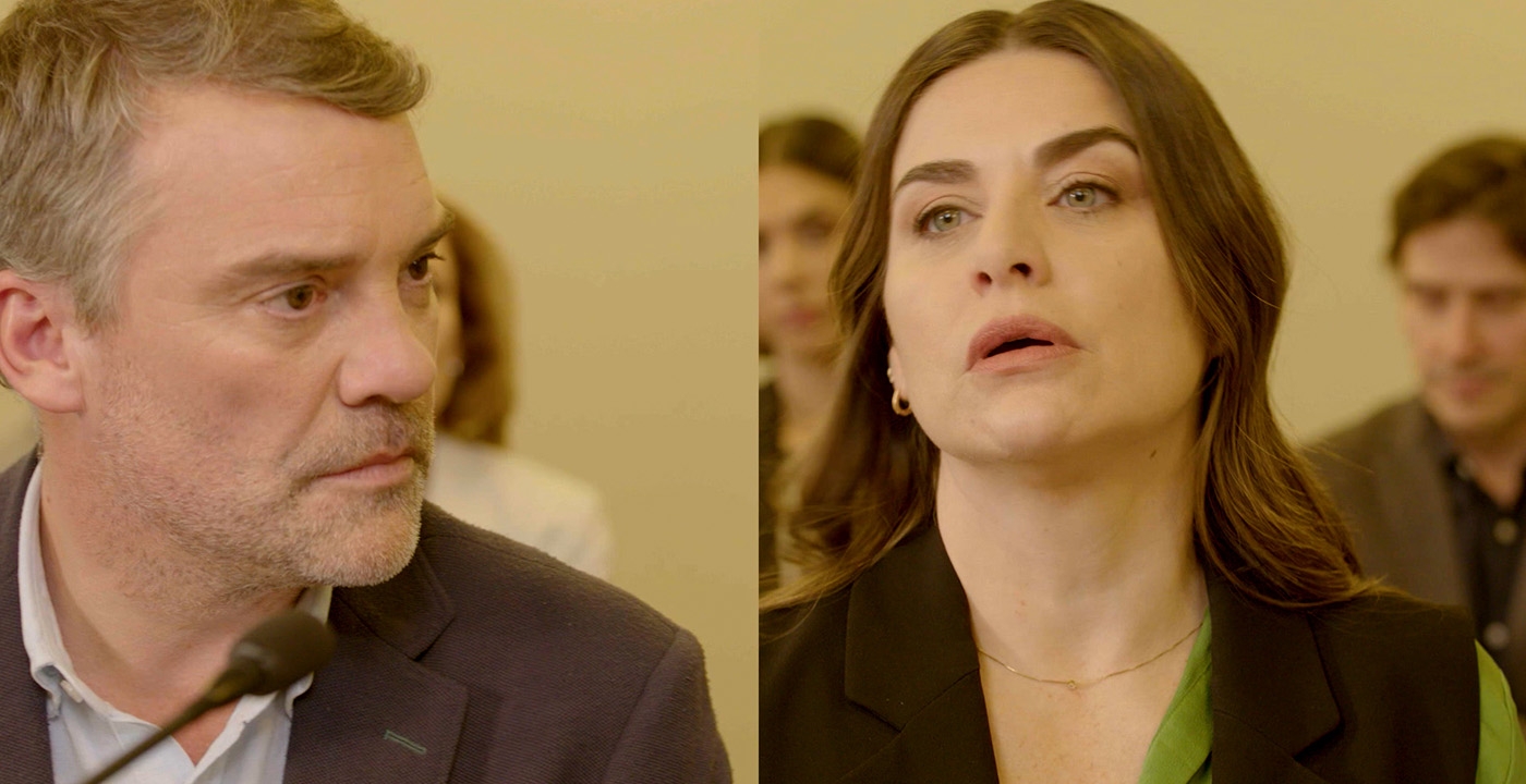 Finalmente, Alonso (Diego Muñoz) le explica a la jueza las razones por las cuales él tiene que vivir con su hijo y le pide a Octavia (Íngrid Cruz) que no le haga daño.