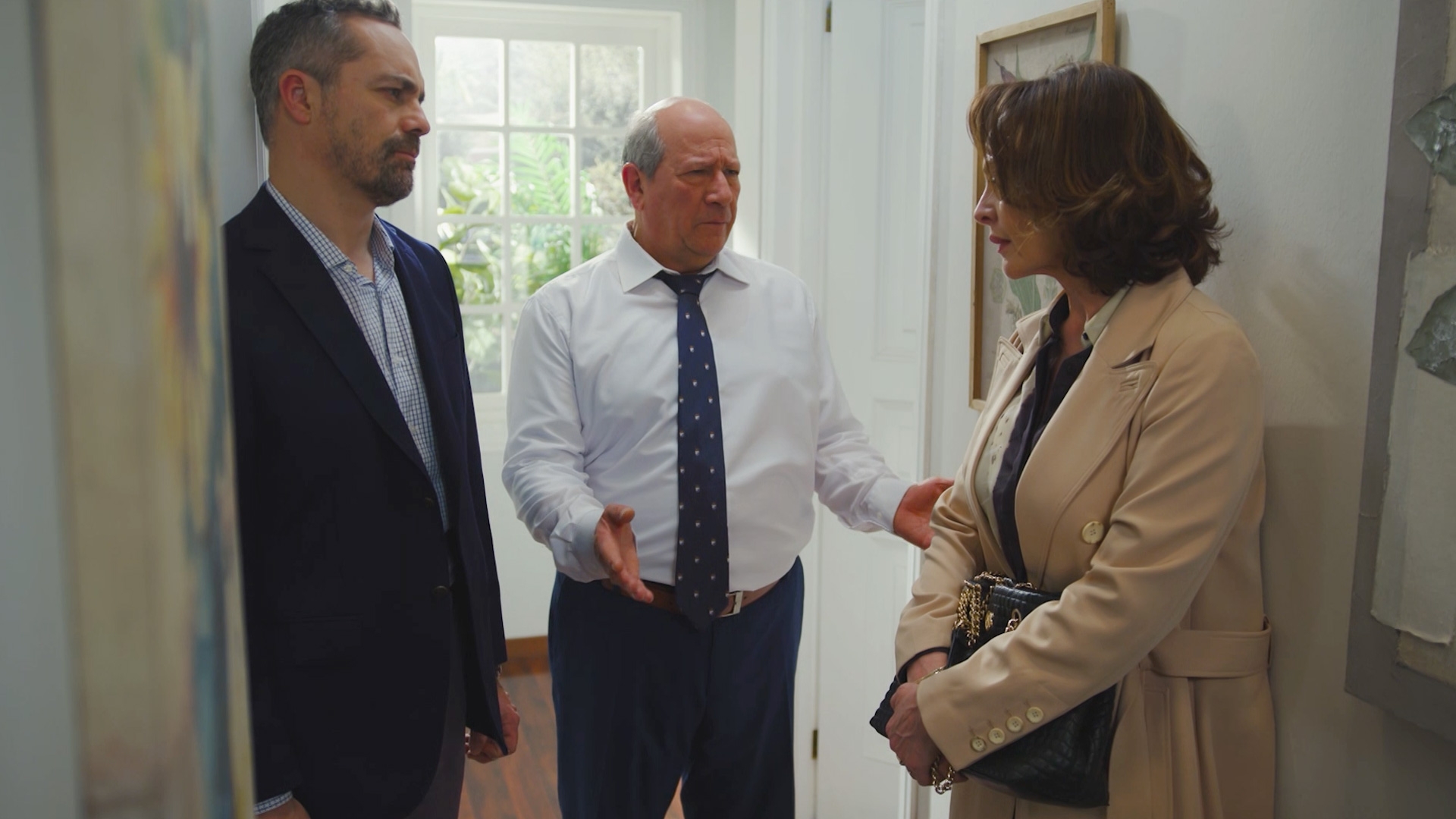 Luis Emilio salió al pasillo y vio a Omar y Bernardita en su discreta conversación. Sospechando que algo sucedía a sus espaldas, demandó saber qué traían entre manos.