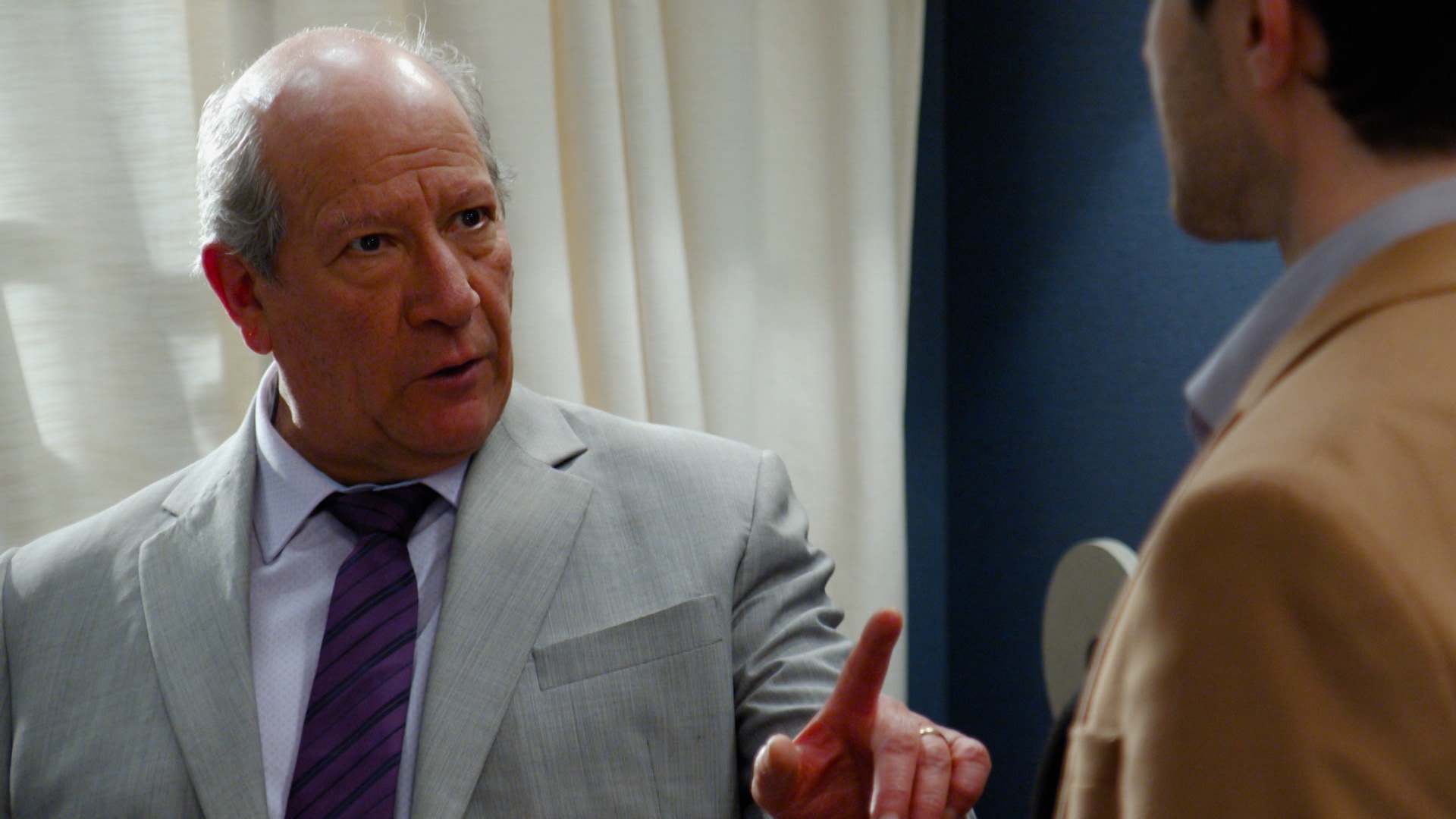 Furioso por no saber de quién se trata, el joven empresario llega hasta la oficina de Luis Emilio (Alejandro Trejo) para exigirle una explicación y que le diga el nombre de esta persona.
