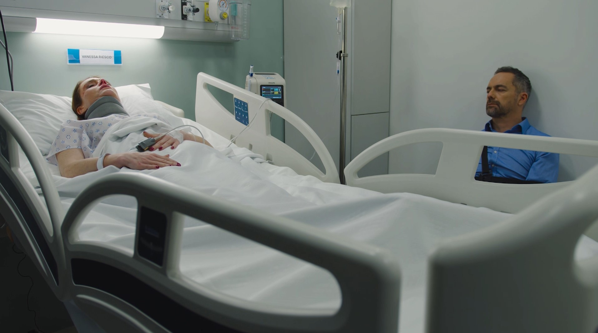 Pese a recibir de lleno el golpe de la colisión, es Omar quien sale prácticamente ileso, no así Vanessa que yace tendida en la cama de la clínica.