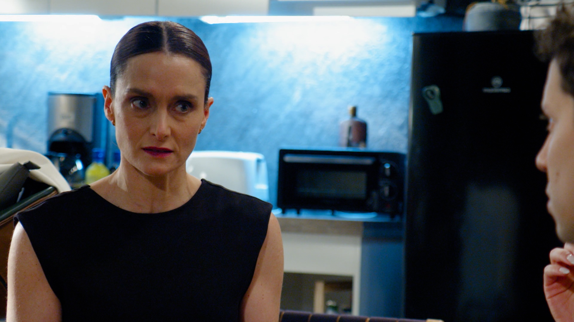 "Luis Emilio lleva muchos años aprovechándose de su posición para abusar de sus empleadas. Él tiene un patrón que sigue al pie de la letra: primero identifica a su posible víctima, averigua un poco de ella, cuáles son sus necesidades y después le ofrece ayuda económica... ayuda que después le 'cobra'", reveló la periodista a Ignacia (Cota Castelblanco) y Bastián (Alonso Quintero).