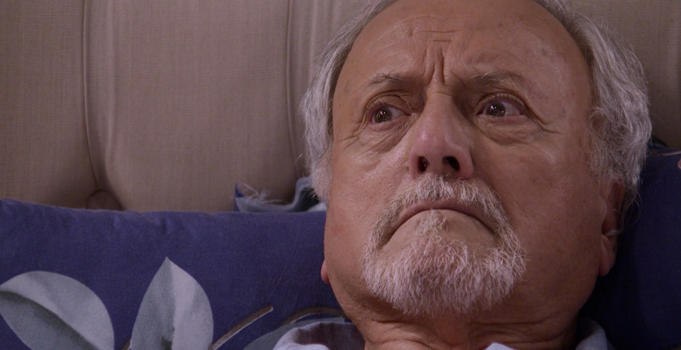 Ella le dice que se tranquilice, sin embargo, él logra decir lo que quiere. "No ¡Ella no!".