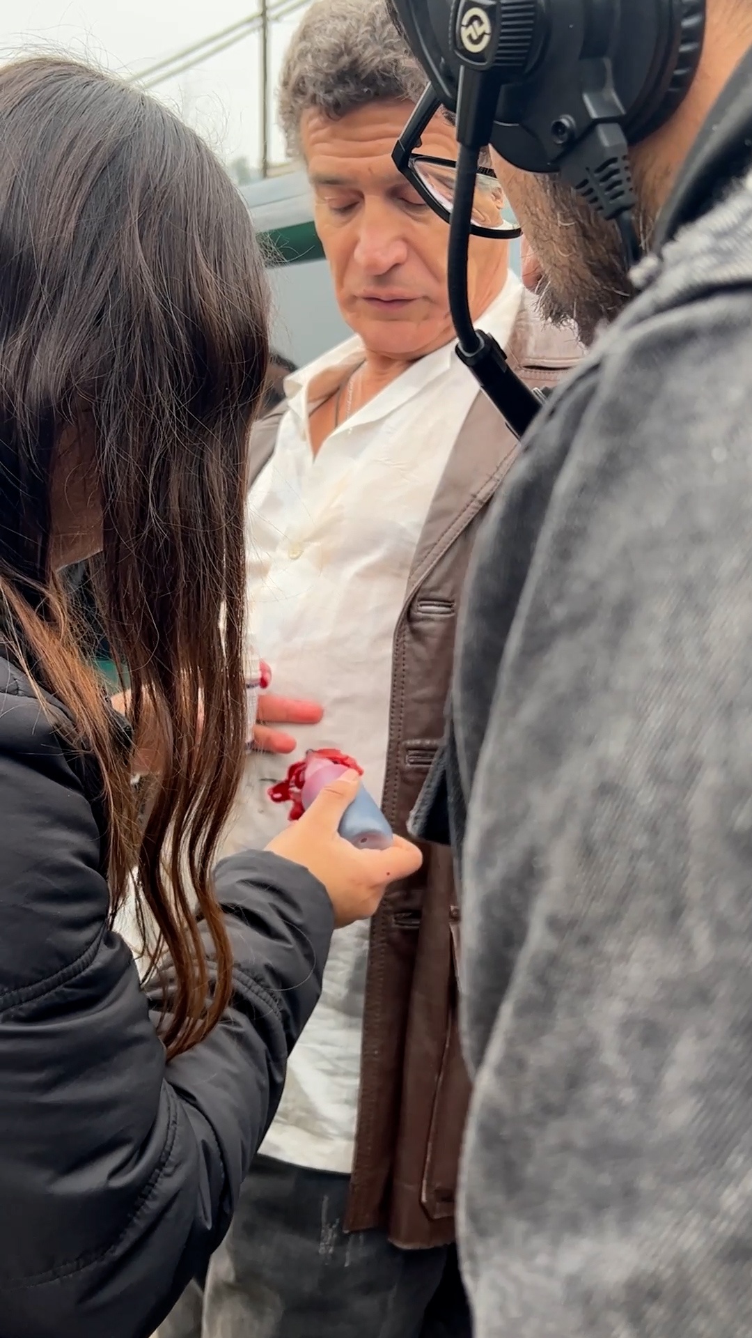 La maquilladora también explicó cómo se llegó al aspecto facial con el cual quedó la pareja de Mariana (Carolina Arregui): "Le hicimos también la sangre de la comisura, cuesta sacarla, queda harto rato, uno se la saca con toallitas o desmaquillante y a veces no se pueden sacar las manchas. Le hicimos ojeras porque el director pidió que estuviera muy pálido".