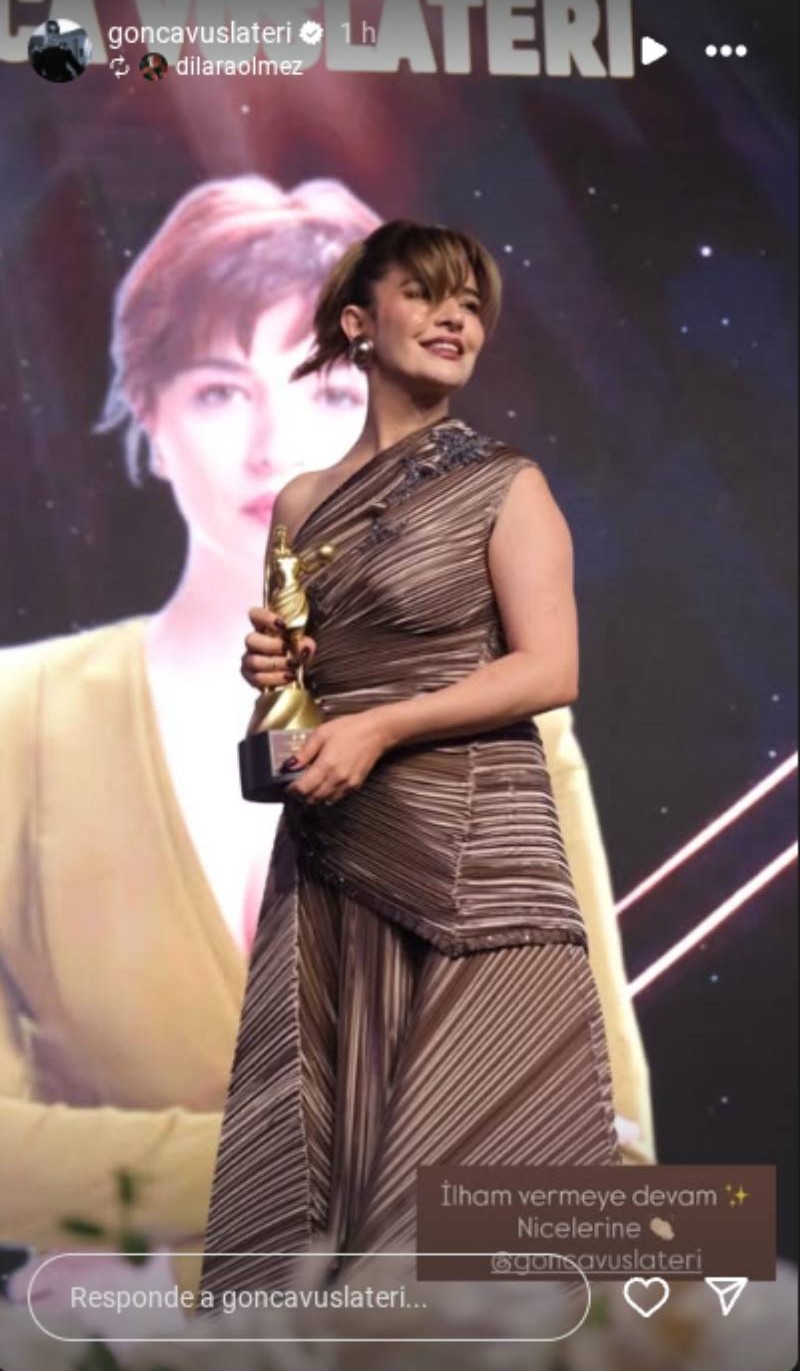 Gonca Vuslateri subió al escenario en el Hotel Raffles, tras ser la ganadora en la categoría Actriz de televisión inspiradora del año, en un premio que reconoce la labor de las mujeres en varios ámbitos visibilizando historias inspiradoras y de igualdad.