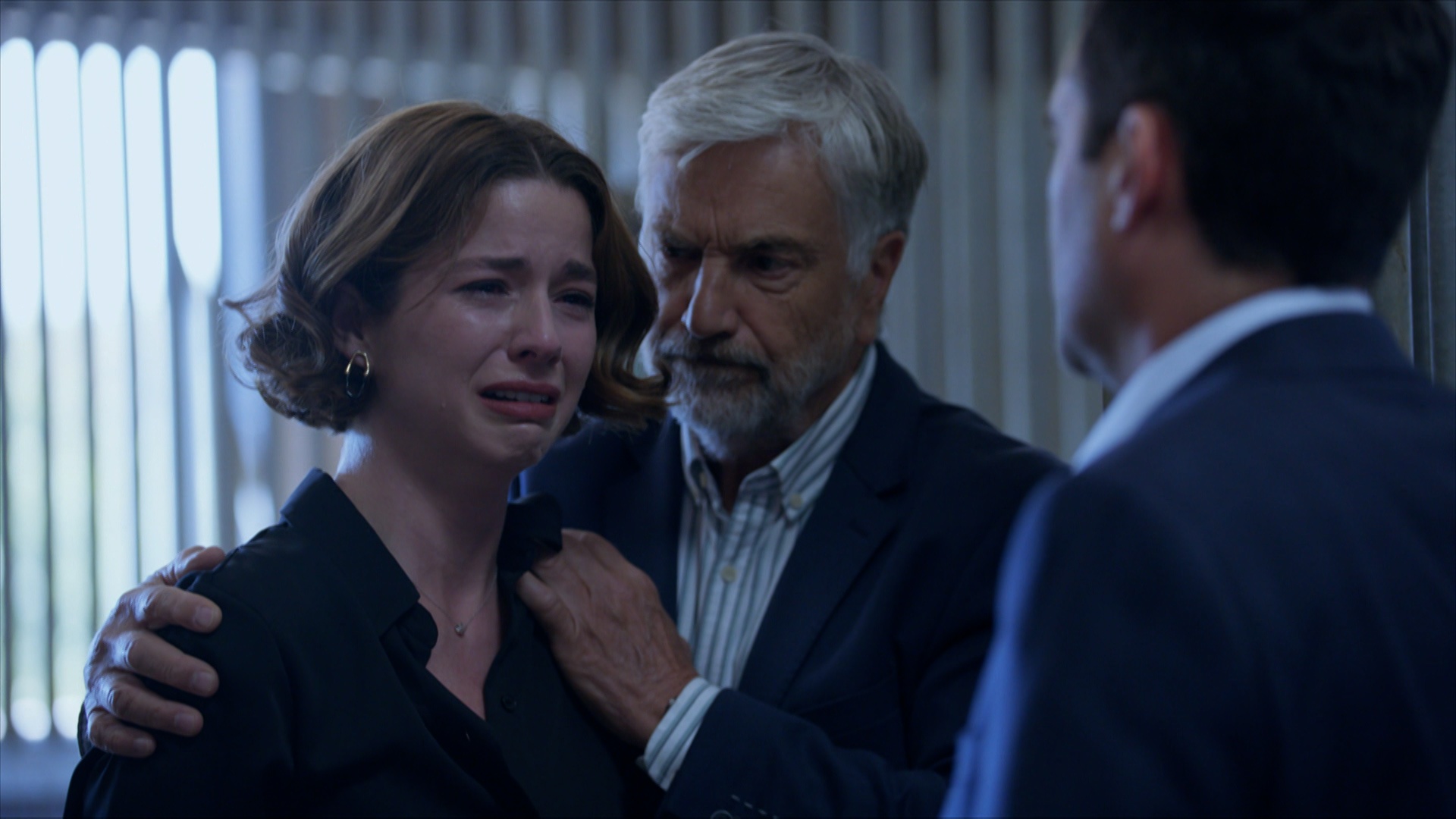 Pero el dolor pronto se transforma en furia. Alexandra se seca las lágrimas, levanta la mirada y clava los ojos en su esposo Tomás (Nicolás Poblete). Sin titubear, lo acusa: "Fuiste tú", "¡Te odio!".