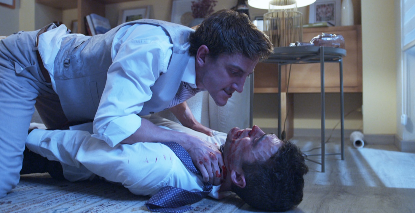 Sin embargo, el hijo de Raimundo (Francisco Reyes) se percata de la situación y lo apuñala en la pierna.