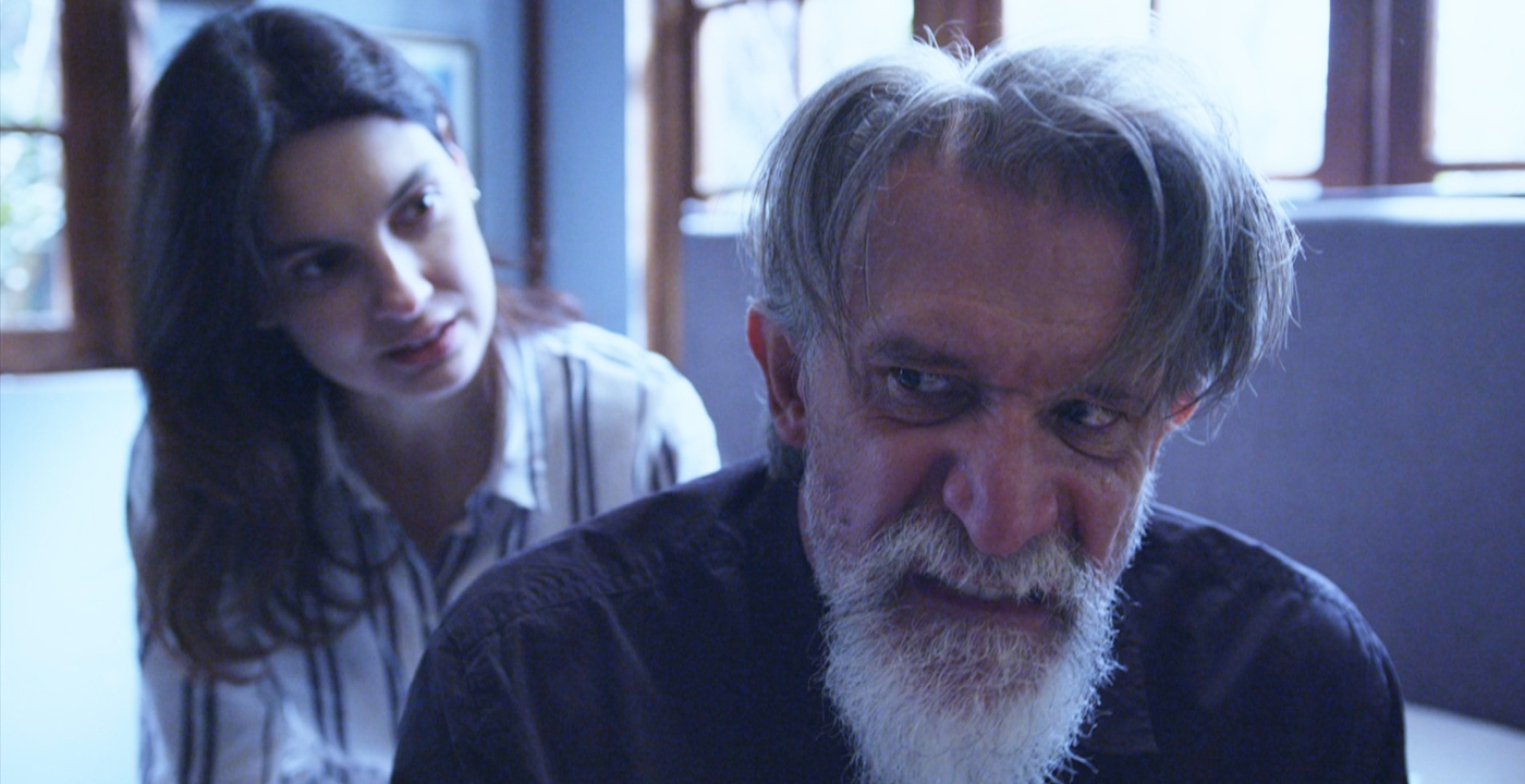 Minutos más tarde, Iván se recuesta en su sillón y bebe una gran cantidad de alcohol, mientras en su mente es torturado por Carla (Paloma Moreno).