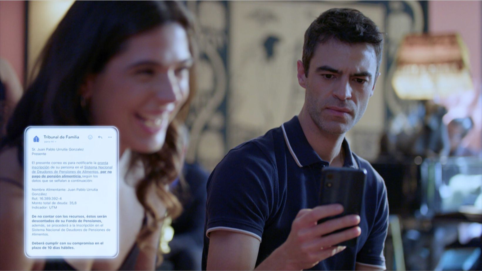 El joven empresario recibe un correo del Tribunal de Familia, por el motivo de "no pago de pensión alimenticia", detallando que tiene 10 días hábiles para regular su situación con el bebé que tuvo con Martina. Sin embargo, Juan Pablo decide ignorar el mensaje y continúa con los festejos del anuncio.