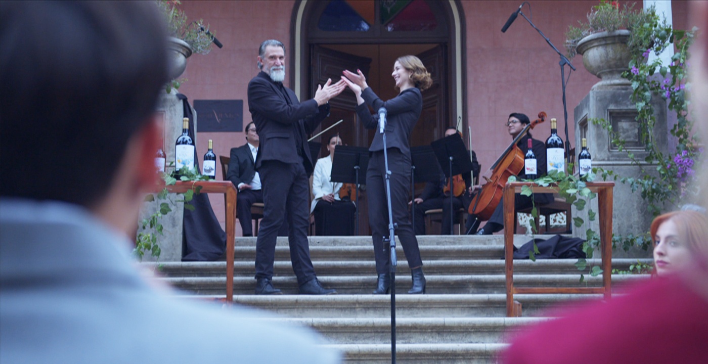 Iván (Francisco Melo) y Alexandra (Mariana di Girolamo) organizaron un evento en el Hotel Siete Vientos para lanzar el primer vino de la Viña Dos Astros, que ambos lideran.