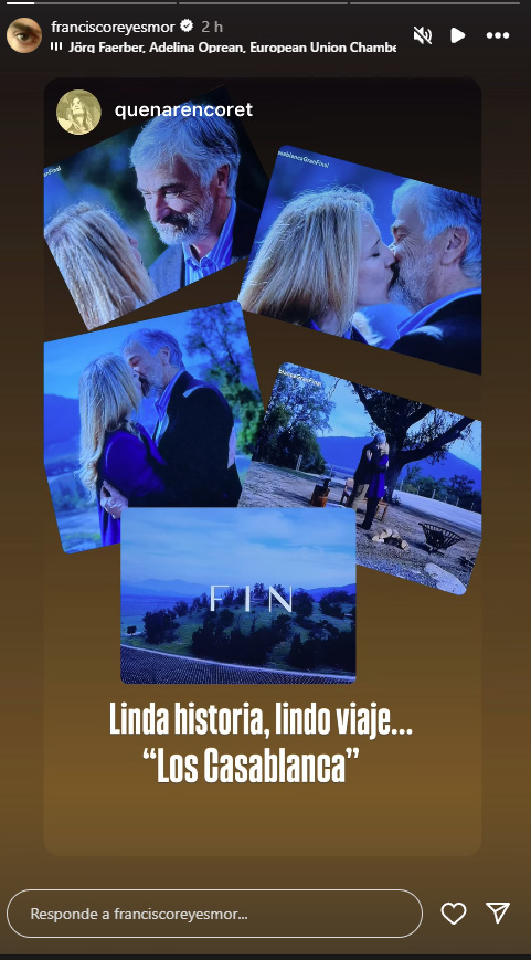 Por su parte, Francisco Reyes hizo eco de las stories de Quena Rencoret, Directora Ejecutiva del Área Dramática de Mega, y de su compañera Sigrid Alegría al publicar algunas escenas del último capítulo con la frase: "Linda historia, lindo viaje... Los Casablanca".
