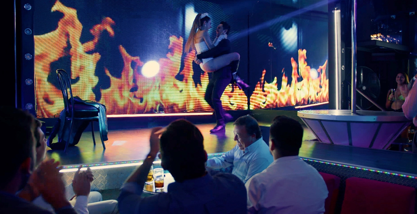 En el último capítulo de Nuevo Amores de Mercado, Esaú (Diego Boggioni) llega al club nocturno donde baila Shakira (Carmen Zabala) y la ve sobre el escenario.