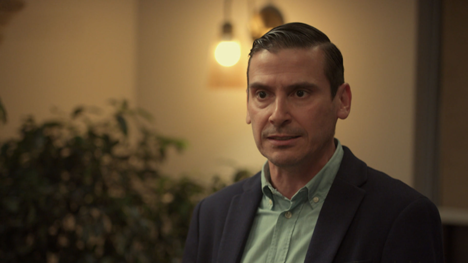 Aunque los dos intenten excusarse, él los cuestionará: "Mira cómo se dan las cosas... Con una mujer casada y embarazada. (...) Besarse en la calle y delante de los vecinos, ¿eso también es amistad?".