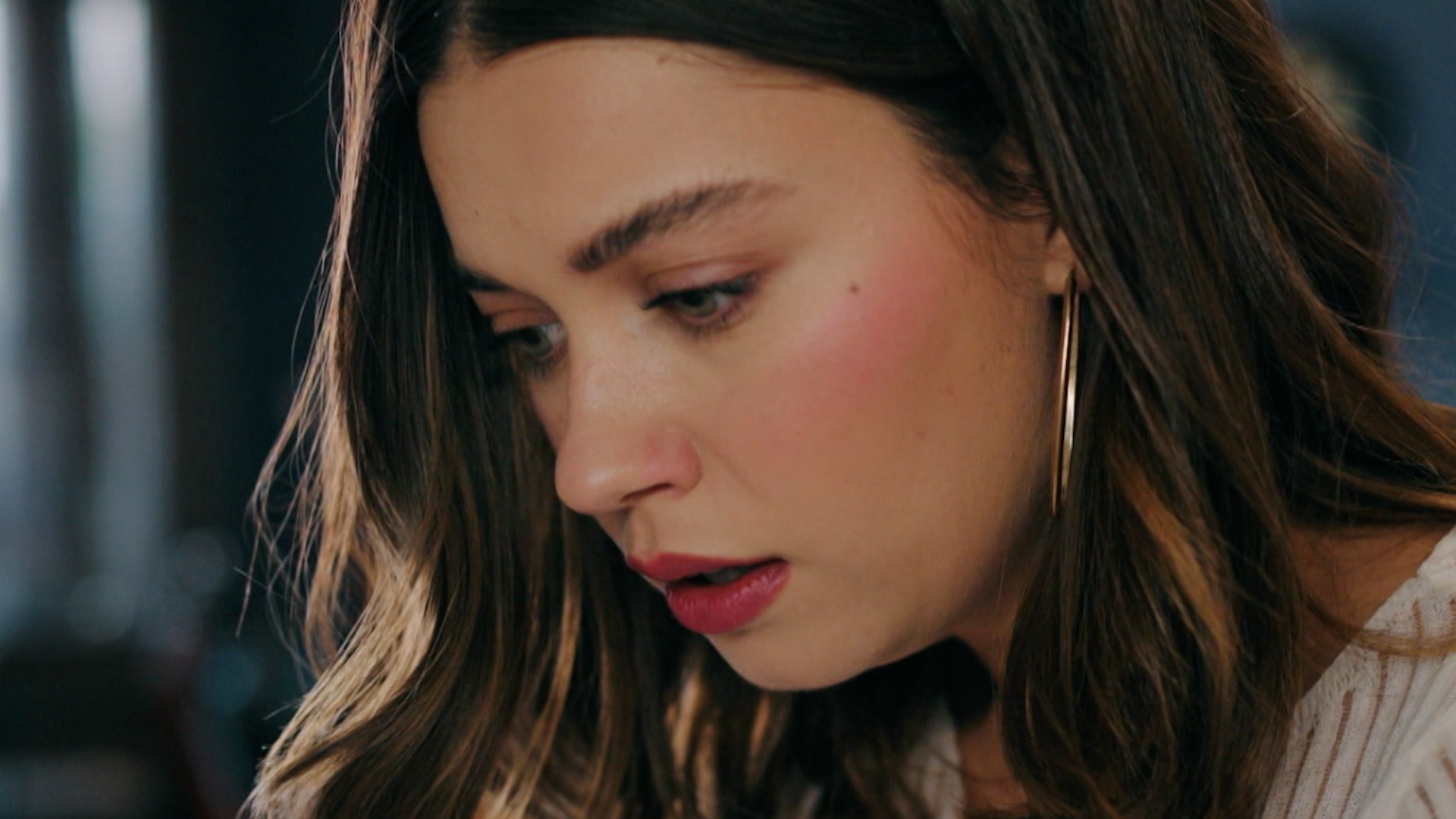 Seyrán, confundida, responde: "Eso no estaba aquí cuando bajé". Y con visible inquietud añade: "¿Qué será?" Ferit, serio, le dice que lo abra para salir de dudas.