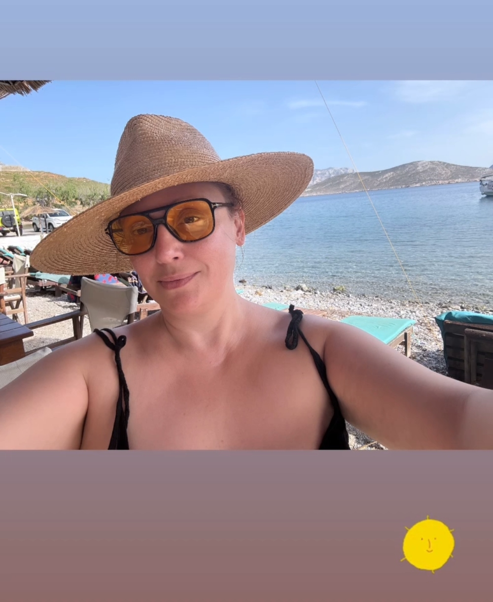 Posteriormente, la actriz de 47 años posó felizmente frente a la costa, con los mismos lentes y sombrero, pero esta vez lució lo que parece un traje de baño negro, con el que de seguro disfrutó del sol y la arena.