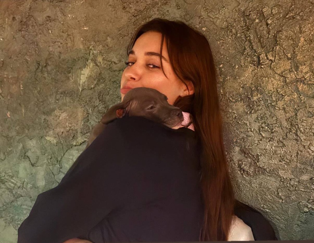 En la fotografía, la intérprete aparece con un look sencillo y natural, sosteniendo en sus brazos a un pequeño cachorro. La escena transmite felicidad y muestra una faceta íntima pocas veces vista.