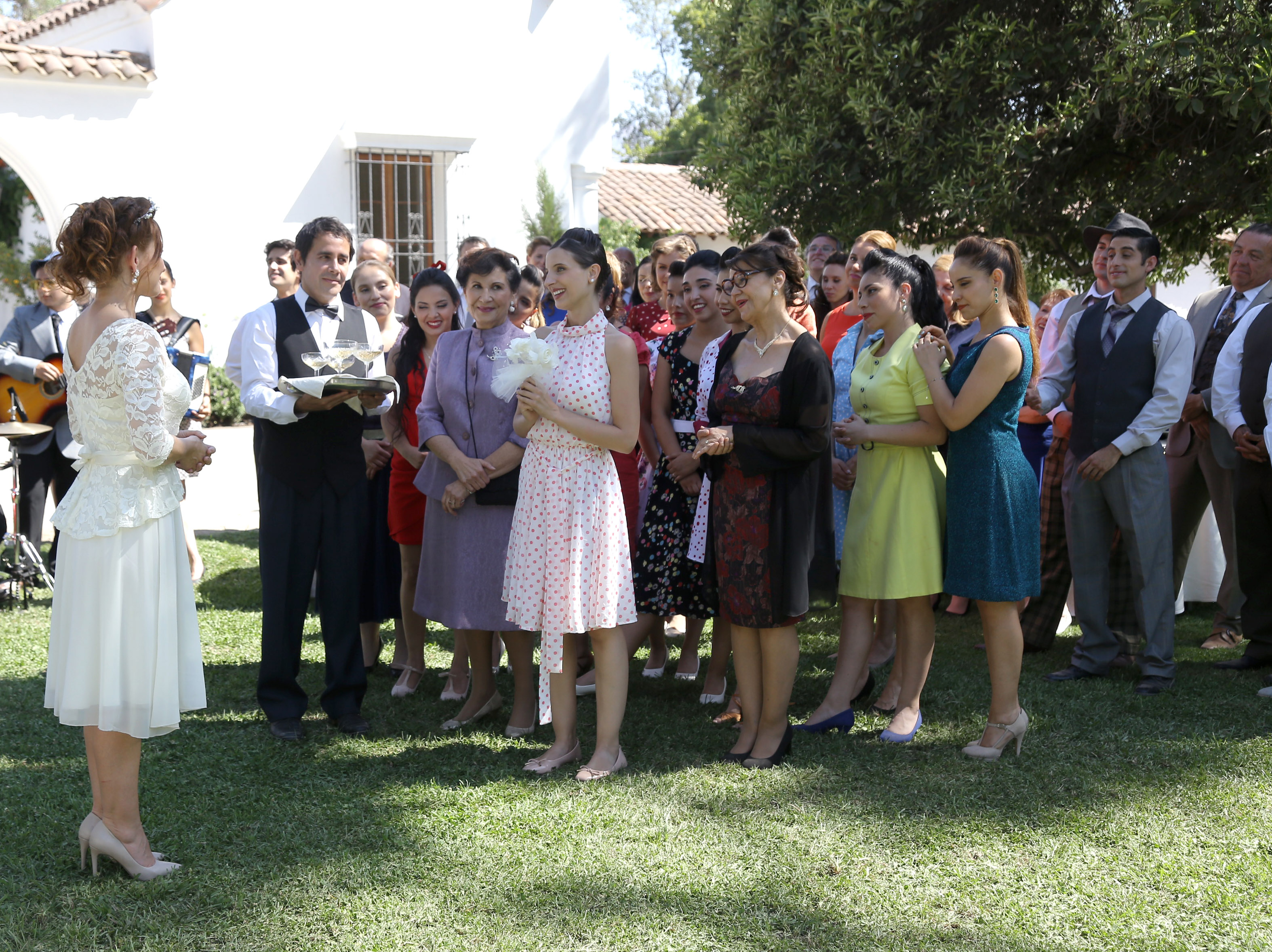 Una escena que incluso contó con un momento musical de Jacinta al interpretar el tema "Bienvenido amor", grabaciones que contaron con la presencia de todo el elenco de la teleserie, y en donde se lucieron con elegantes trajes de la época.